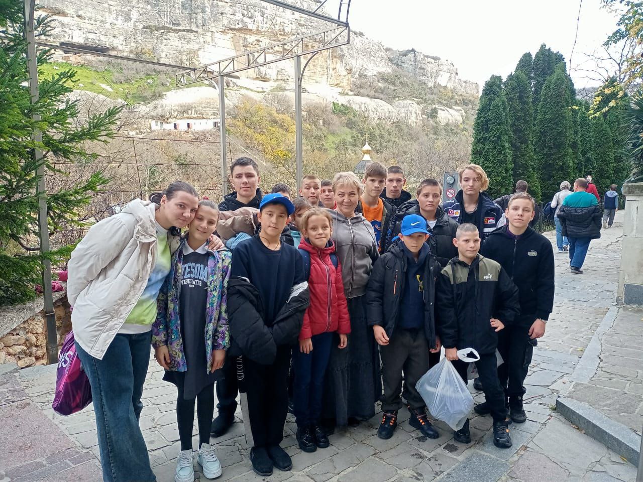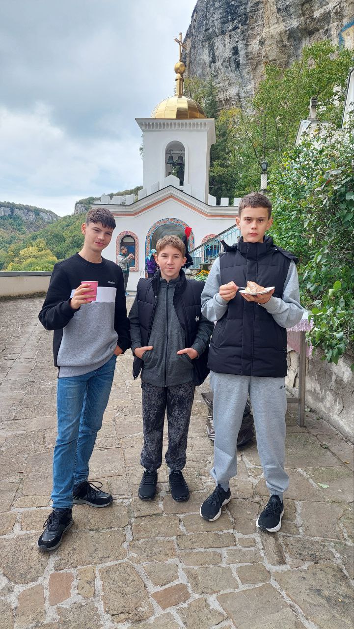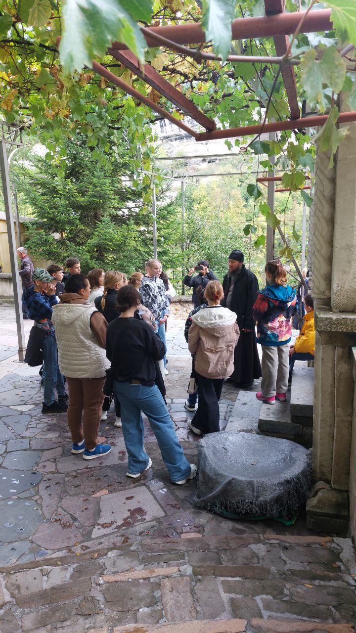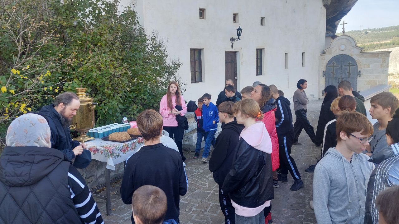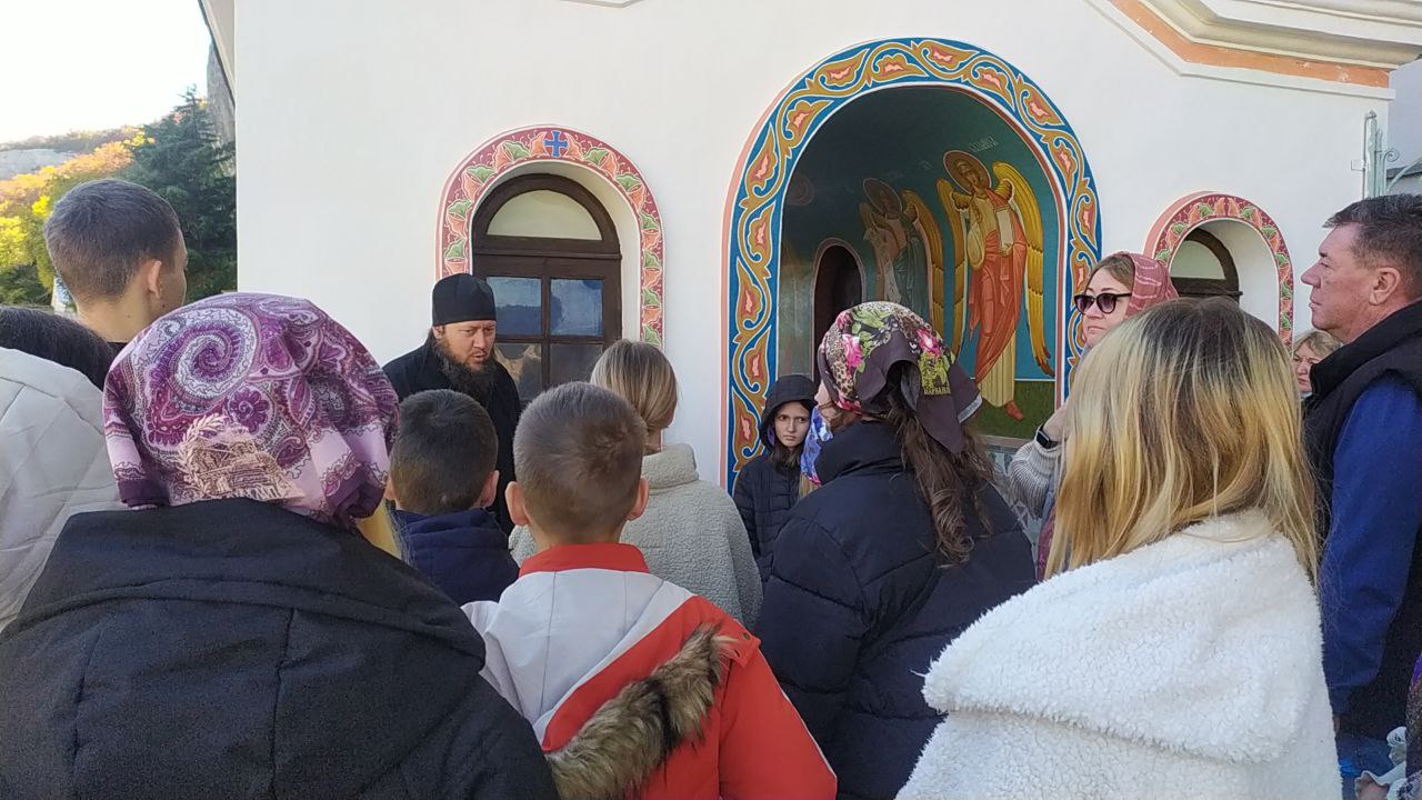 и общения с иеромонахом Авраамом, который познакомил и напомнил ребятам историю монастыря, ответил на интересующие их вопросы. Ниже на фото начало встречи с воспитанниками Севастопольского детского дома 12 октября 2025 г.: