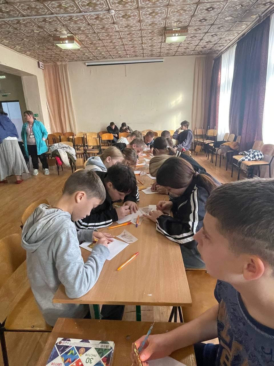 От мала до велика учились наносить рисунок и с помощью инструмента создавать фактуру: маленькие участники, 4 года, и ребята постарше, – каждый сделал свою работу.