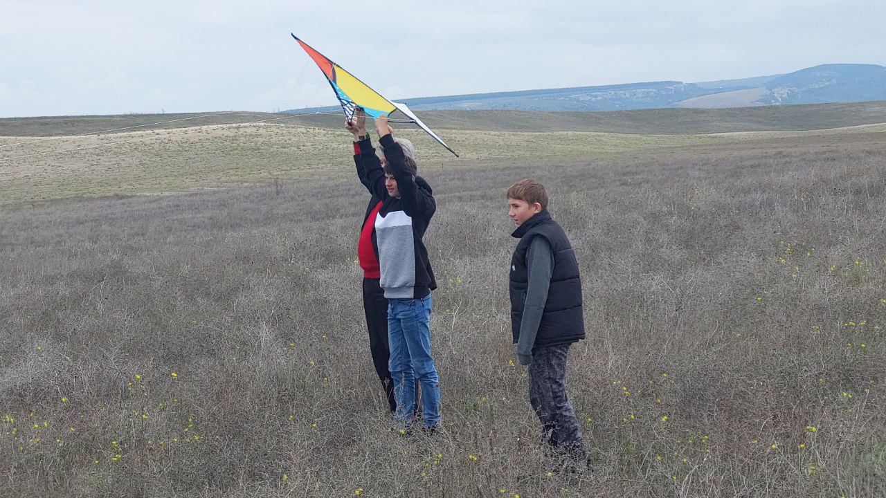 Полной неожиданностью для ребят стал запуск по дороге домой на фоне крымского предгорья воздушного змея! Мальчишки усвоили жизненный урок о том, что для того, чтобы оторваться от земли и удержаться на высоте, не упасть в самый низ придется хорошо потрудиться.