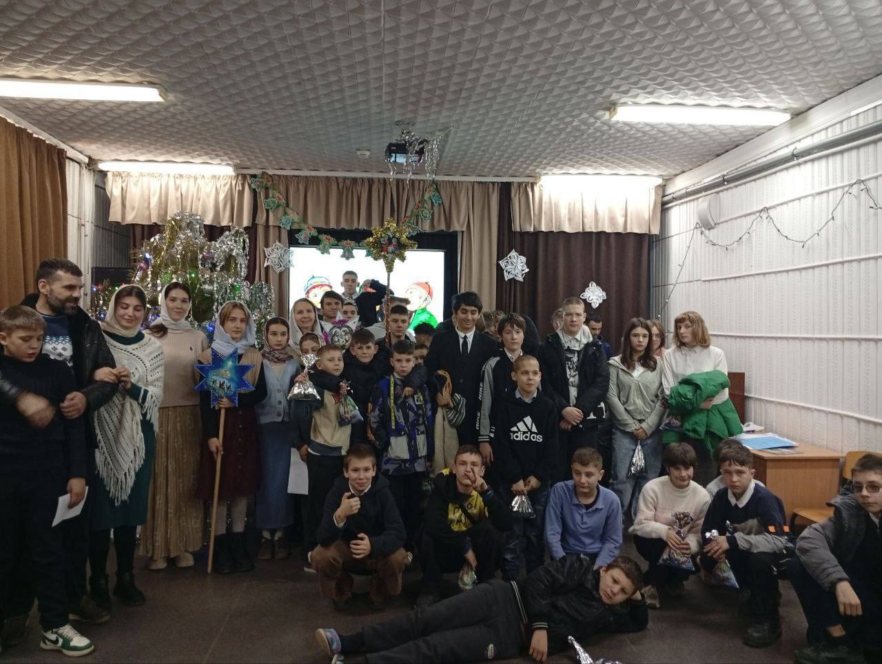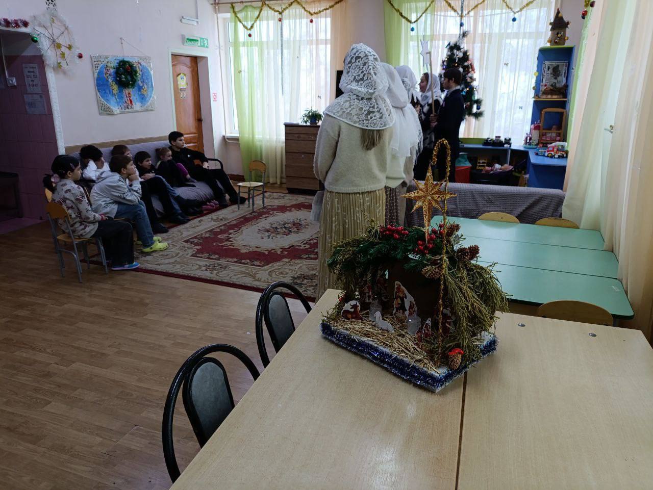 исполнение колядок нашими христославами слушали воспитанники Центра социальной поддержки детей, семьи и молодёжи в п. Гвардейское 08 января:
