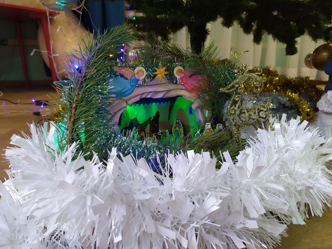На фото ниже – вертеп, созданный в Центре социальной поддержки детей, семьи и молодёжи в п. Гвардейское также совместно с его воспитанниками: