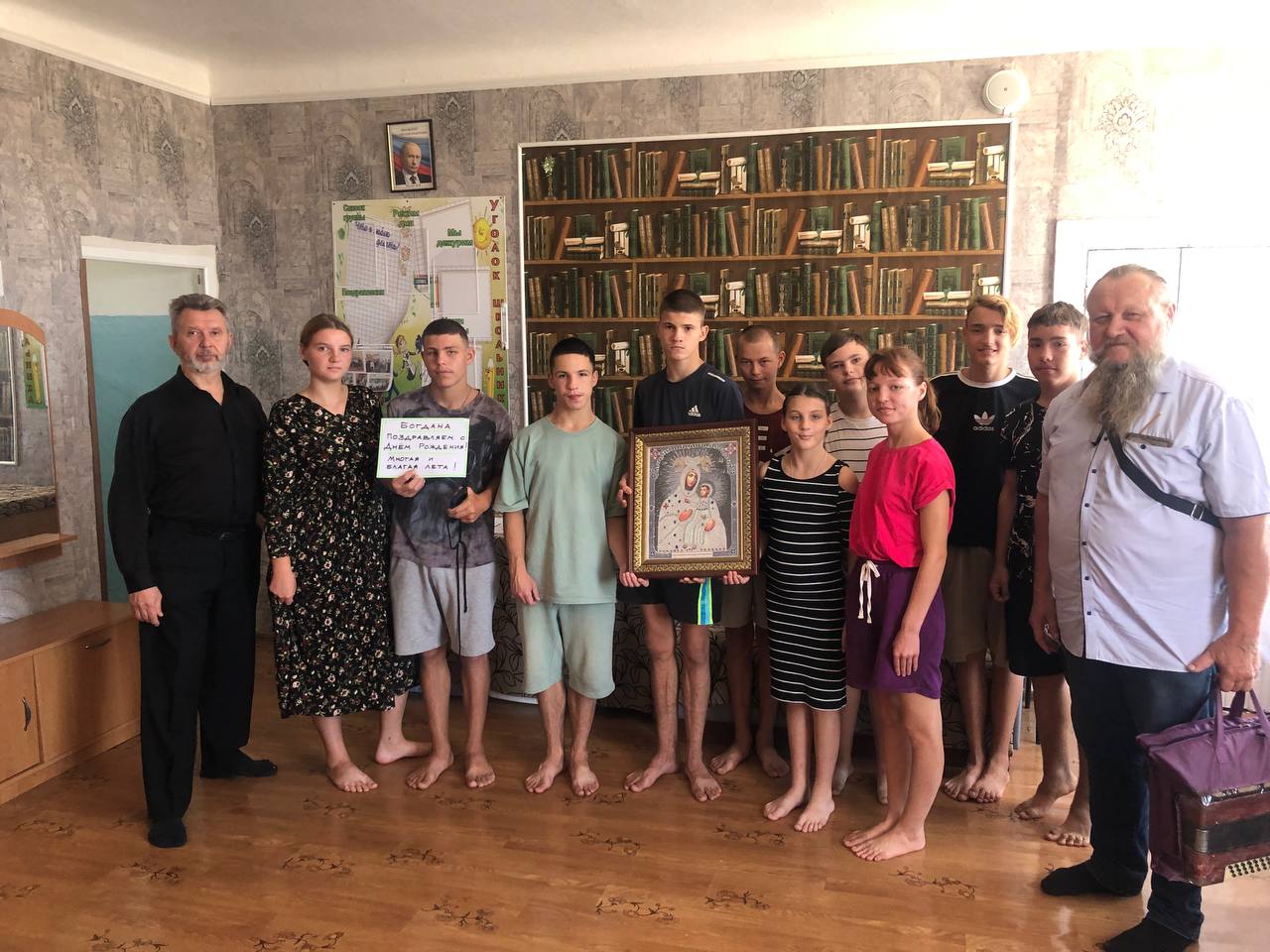 Особенностью встречи в Чеботарской школе-интернате стало поздравление именинника с Днём Рождения в традициях православия.